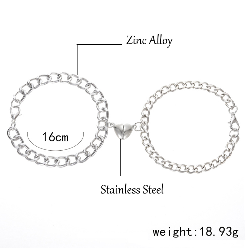 Magnetic Stainless Steel Heart Charm Couple Bracelet
